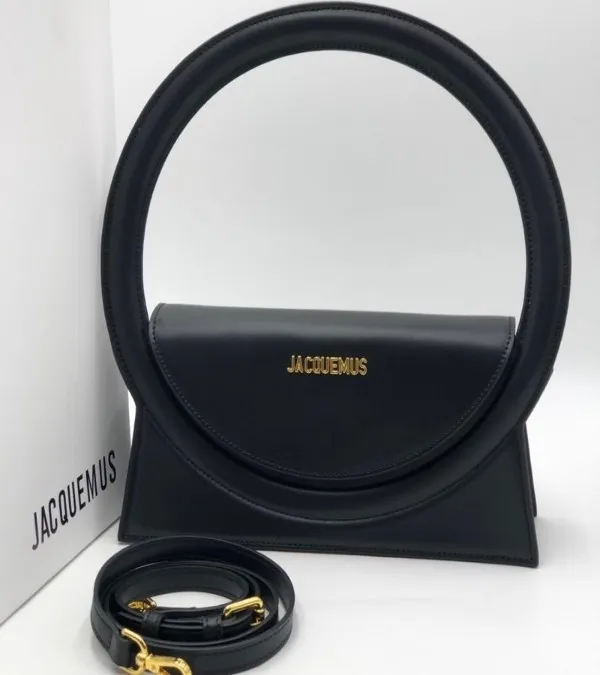 - Circle purse- Smooth leather structured bag- Structured round handle- Magnetic flap closure- Removable shoulder strap- Engraved lobster clip- Interior pocket- Gold metal logo and hardware- Fully lined in cotton- Dyed edges 26 x 12.5 cm 100% Cowskin