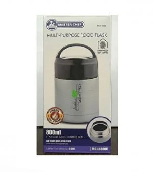 This multi purpose non rust, stainless steel food flask is designed to help in food, water or ice cube storage and maintain the temperature either hot or cold for a minimum of 24hours. It is ideal for use in home, office or travel. The food flask preserves the freshness and flavour of its content