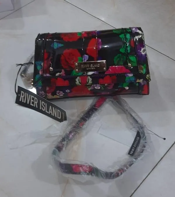 Brand:River Island Department:Women Size:Small Handle/Strap Colour:Black Lining Colour:color Style:shoulder Exterior Colour:Black Exterior Material:pu leather Handle Drop: 62cm. H15cm x W24cm x D5cm. Lining made with 100% recycled material.